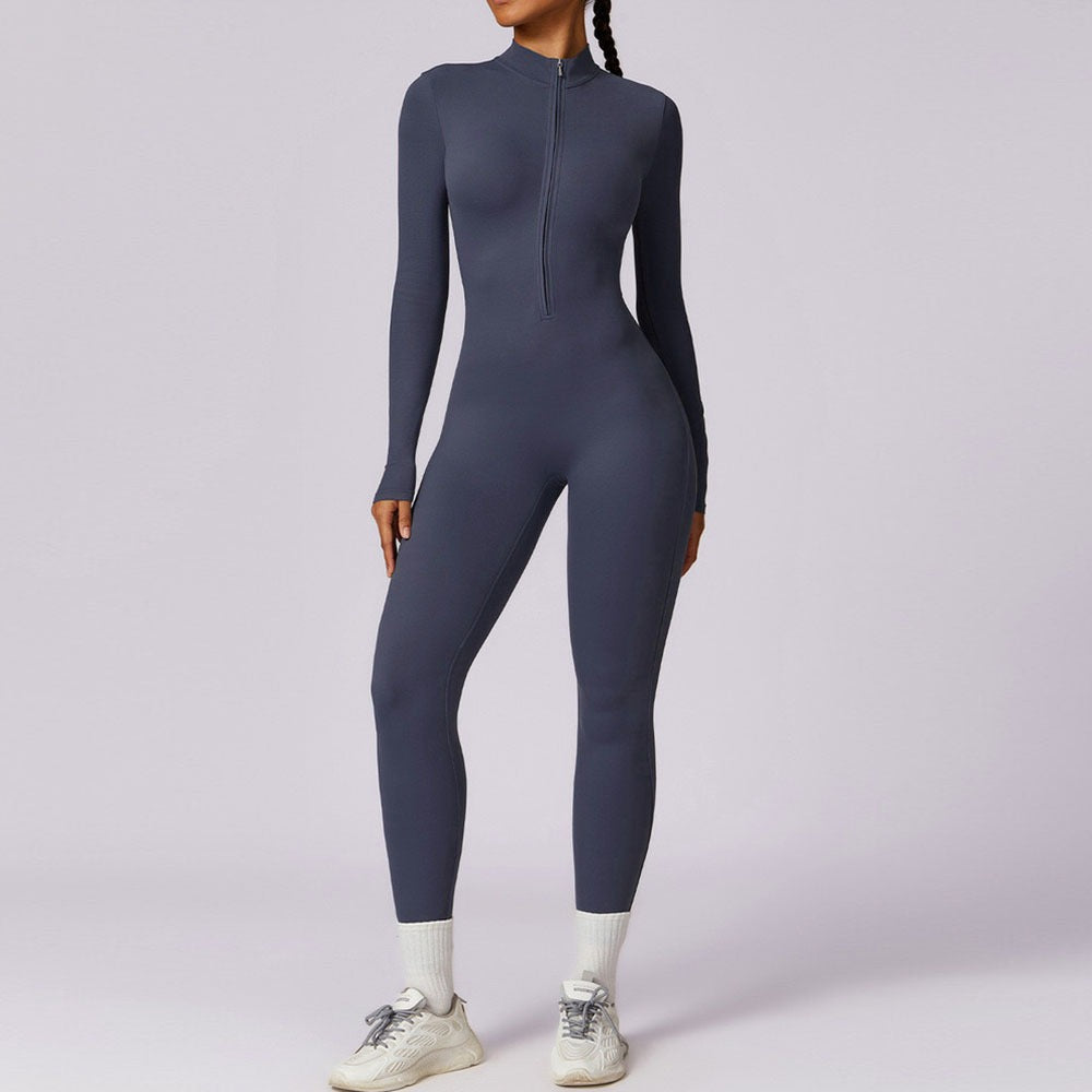 Combinaison de sport sculptante manches longues – Zip & taille gainante